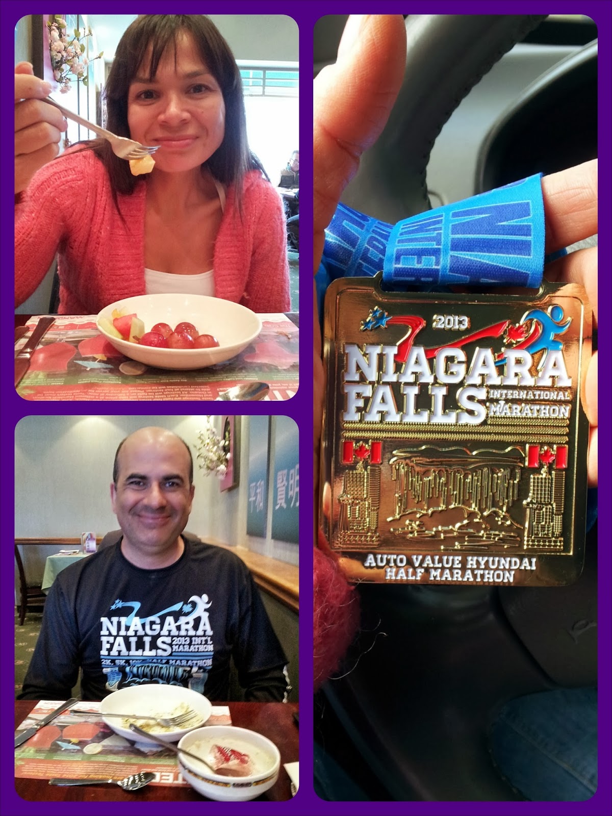 - We got ourselves out of the house by 8am, dropped Julien off at Elin's at 8:15am, then hit the road for Fort Erie. The finish line was in Niagara Falls, but the start line was in Fort Erie, 7K from the border. Gun time was 10am and I dropped hubby off for 9:30. He had to walk a couple of kilometers to the start line.