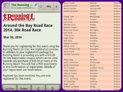 - This year marks the 120th anniversary of the Around the Bay Road Race. I felt a moment of nostalgia this morning and even though I still can't run for three more weeks. I registered for the 30K race. I'm excited and nervous at the same time. I'm nervous about running again all together. What if I die during my first run? It's been 8 weeks since I have run. Whoa! That is a long freaking time. I'm just nervous about struggling. I know I won't be starting from where I was when I first started running at 230 pounds, but I'm still anxious about what it will be like. What if my breathing is way off? What if my ankle hurts? What if I try to avoid a little old lady and her dog and fall over on an uneven piece of pavement? She is so going down this time! KIDDING!